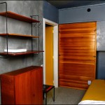 In de slaapkamer met het kleine venster naar de achterkant staan zoals op de kinderkamer de bedden achter elkaar opgesteld. De tussenwand tussen slaapkamer en badkamer kent een terugkerend element, namelijk de ingebouwde kast. Hier echter geen rechtstreekse deur van slaapkamer naar badkamer.